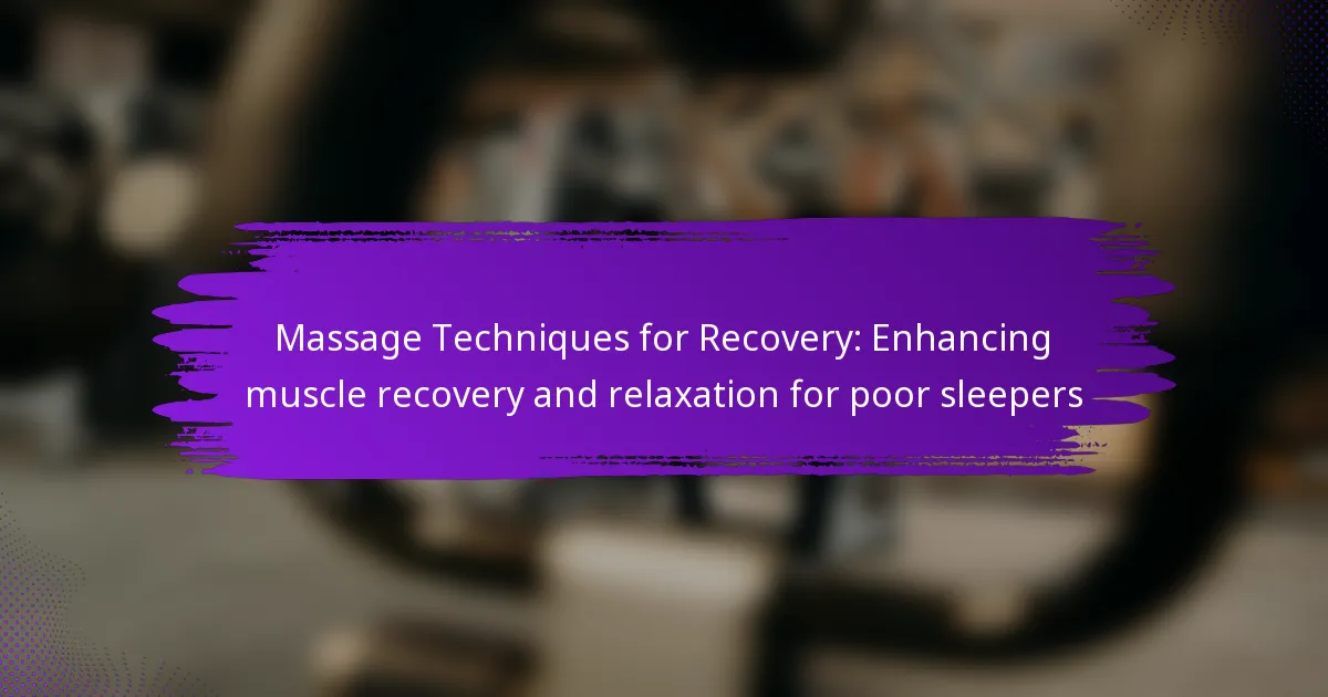 Massage techniques play a vital role in enhancing muscle recovery and promoting relaxation, particularly for individuals who struggle with sleep. By alleviating muscle tension and improving circulation, these techniques not only reduce soreness but also foster a calming environment that supports better sleep quality. Choosing the right massage method can significantly impact recovery goals and overall well-being.